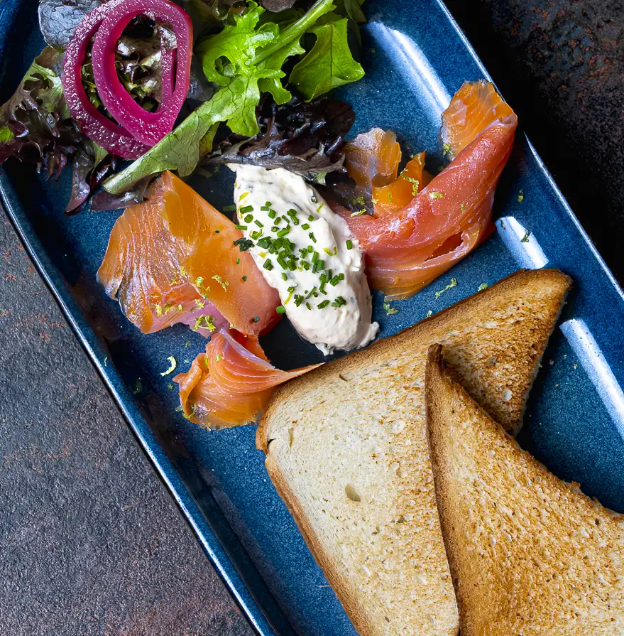 Délicate et parfumée, la truite fumée de William & James est servie en entrée ou en suggestion, selon la saison et nos inspirations.